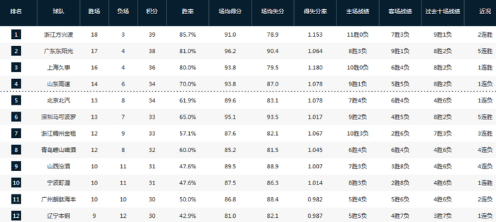 对于积分榜造成了比较大的冲击,特别是辽宁和山西持续输球,新疆又遭到爆冷。