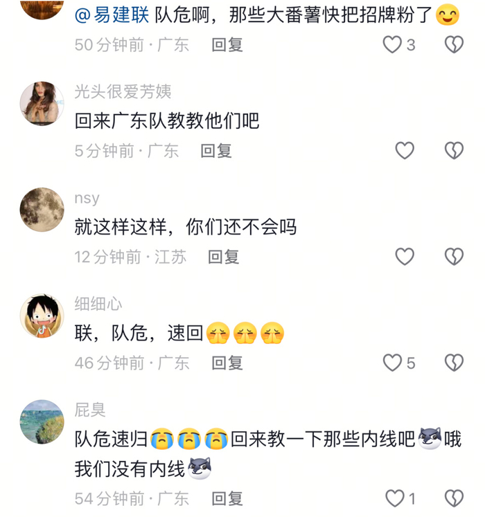 球迷对于阿联这个教学的动态,评论方面也几乎出现一边倒,希望阿联回去广东男篮,好好给这一群“大番薯”上一课,尤其是一部分有潜力的年轻球员,需要他去讲解内线脚步,卡位等细节。