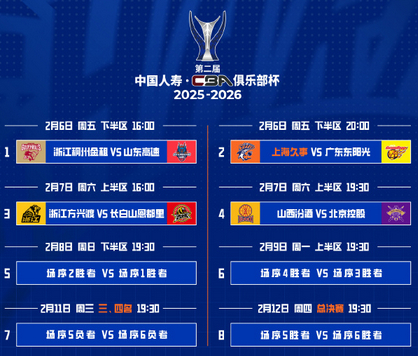 北京时间2月6日,第二届CBA俱乐部杯决赛阶段将在内蒙古自治区呼和浩特市内蒙古体育馆举行,八进四较量当中,广东男篮vs上海男篮,胜者将会晋级四强。