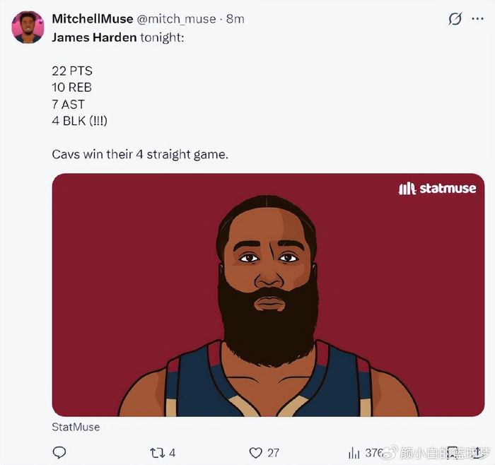 美记Jim Cirner:哈登是一位非常出色的篮球运动员。