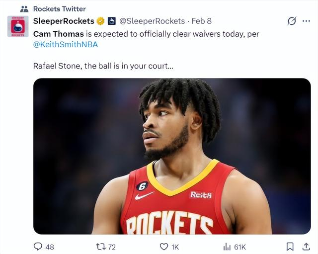 实际上在托马斯被篮网裁掉后,休斯顿火箭队也是他的潜在下家之一,而火箭距离硬帽只有125万,火箭最高只能开出125万的底薪,此前很多人都觉得托马斯是因为薪水没有加盟火箭,实际上根本不是。