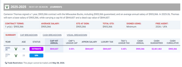 雄鹿只给了托马斯一年84.4万美元的底薪合同,是按新秀底薪来算的,这份合同实际上火箭队也能给,为何最终火箭队没有选择他呢?一方面是因为他不是乌度卡喜欢的防守型球员,另一方面就是他的数据水分很足。