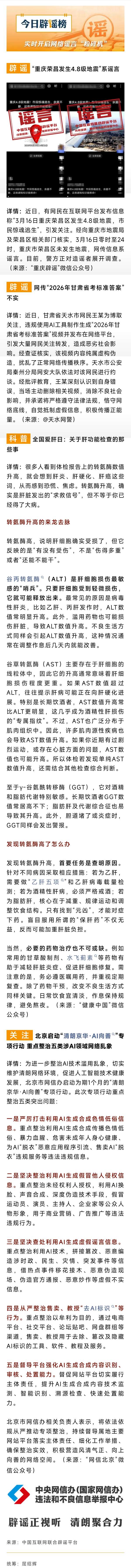 “重庆荣昌发生4.8级地震”系谣言(2026·03·18)